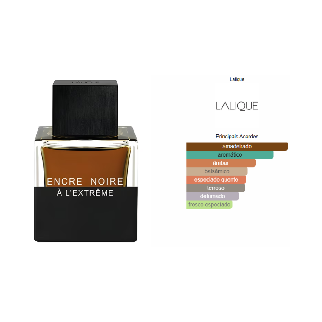Encre Noire A L’Extreme de Lalique é um perfume Amadeirado Aromático Masculino. Encre Noire A L’Extreme foi lançado em 2015. O perfumista que assina esta fragrância é Nathalie Lorson. As notas de topo são: Cipreste, Resina de Elemi e Bergamota. As notas de coração são: Vetiver do Haiti, Vetiver, Incenso e Raíz de Orris. As notas de fundo são: Benjoim, Sândalo e Patchouli.