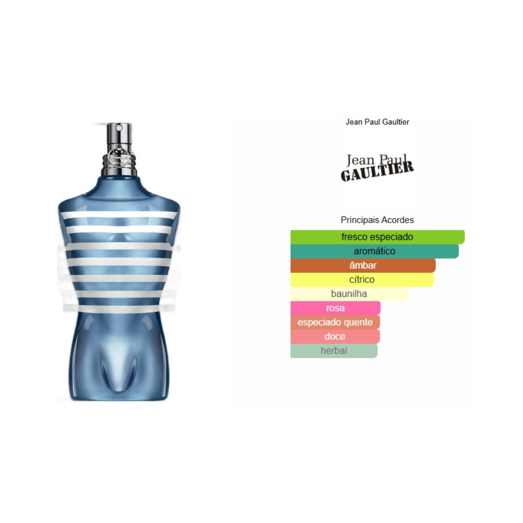 Perfume Jean Paul Gaultier – Le Male On Board fracionado em decant de vidro com borrifador.